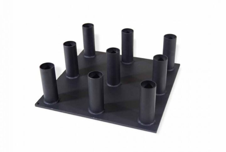 El almacenamiento horizontal de 8 barras facilita el almacenamiento. Almacenar la barra horizontalmente de forma natural evita cualquier daño en el manguito de la barra que pueda producirse por el almacenamiento vertical. Todos los lados de cada ranura de barra están cubiertos con una funda de plástico para proteger el afilado en las barras. También liberará cualquier espacio en el piso que haya utilizado de otras unidades de almacenamiento de barras basadas en pisos.